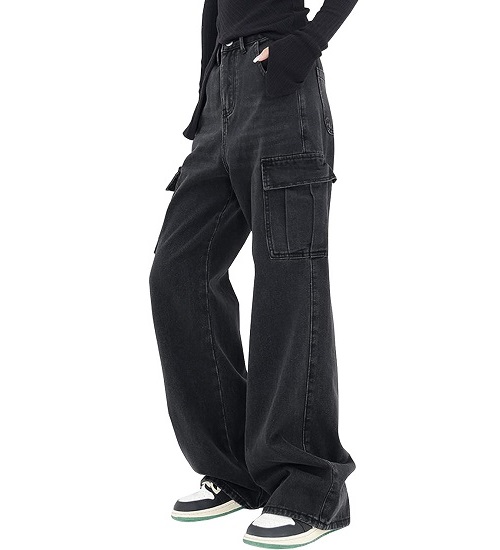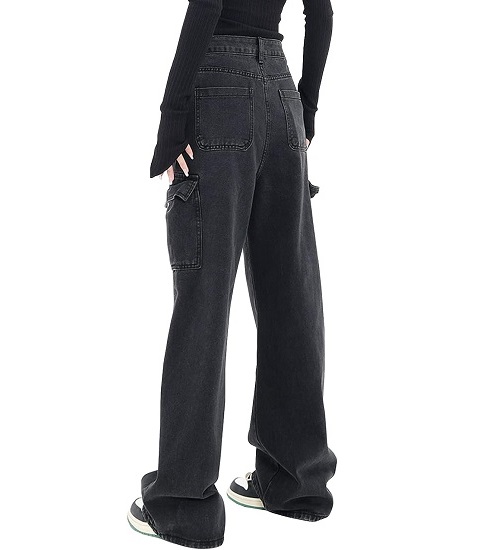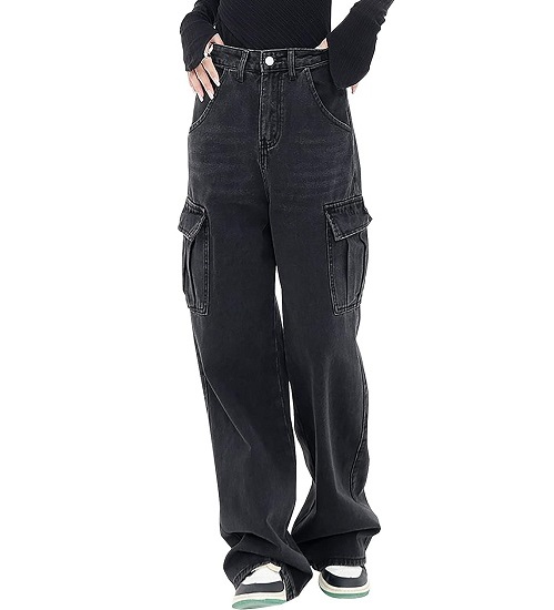Retro streetwear black cargo baggy jeans style always follow popular trending to modern young womens,girls,juniors,lady.