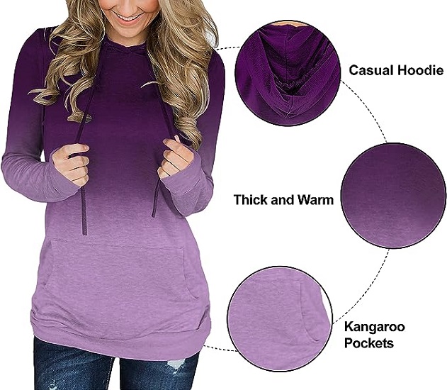 Design: Unique tie dye color block &floral print design make your hoodies fashionable.
